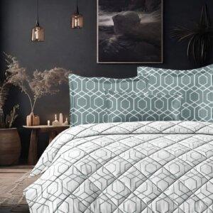 The VBC printed reversible comforter set from Sleeping Owls features modern designer patterns on both sides, allowing two décor styles in one set—perfect for classic and contemporary bedrooms with a rich, premium look.