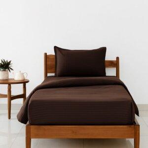 Sleeping Owls Colors210TC 100% Cotton Stripe 1N Super King Bedsheet with 2N Pillow Covers-(TAUPE)