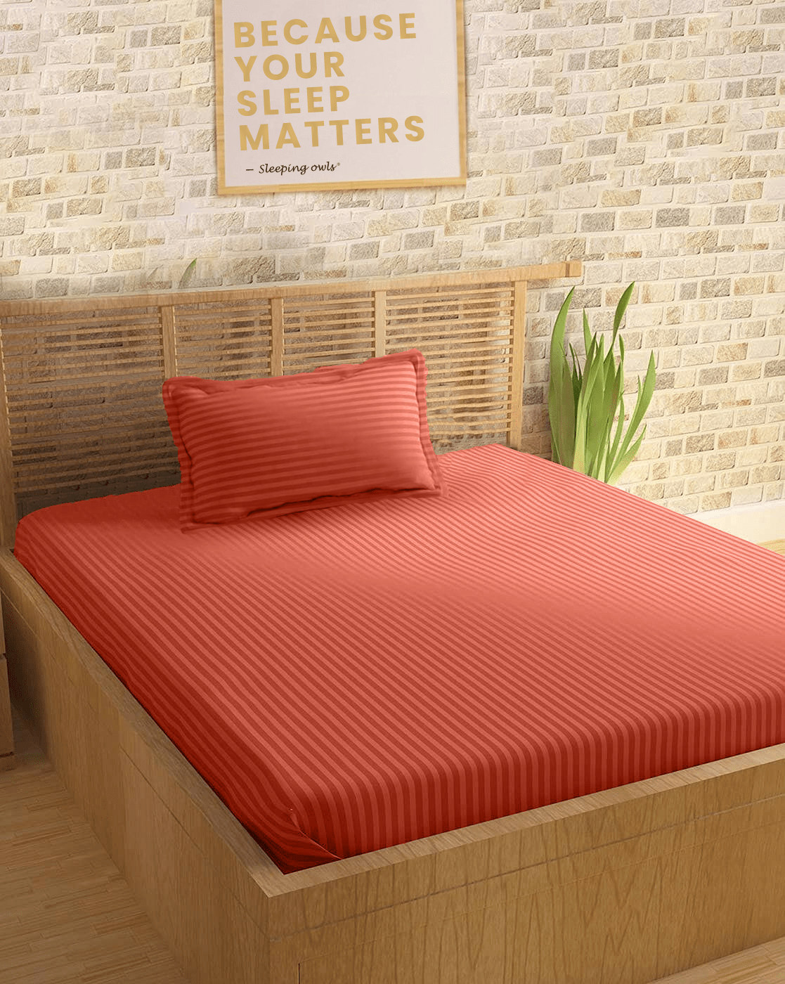 Be the first to review “Sleeping Owls Colors210TC 100% Cotton Stripe 1N Super King Bedsheets with 2N Pillow Covers-(RUST)” Cancel reply