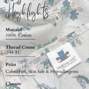 Sleeping Owls Allure 144TC 100% Soft Cotton Printed 1 Double Bedsheet with 2 Pillow Covers which will perfectly fit your bed. A pure cotton bedsheet is an ideal option for your bedroom, and the high thread counts ensure lasting durability.