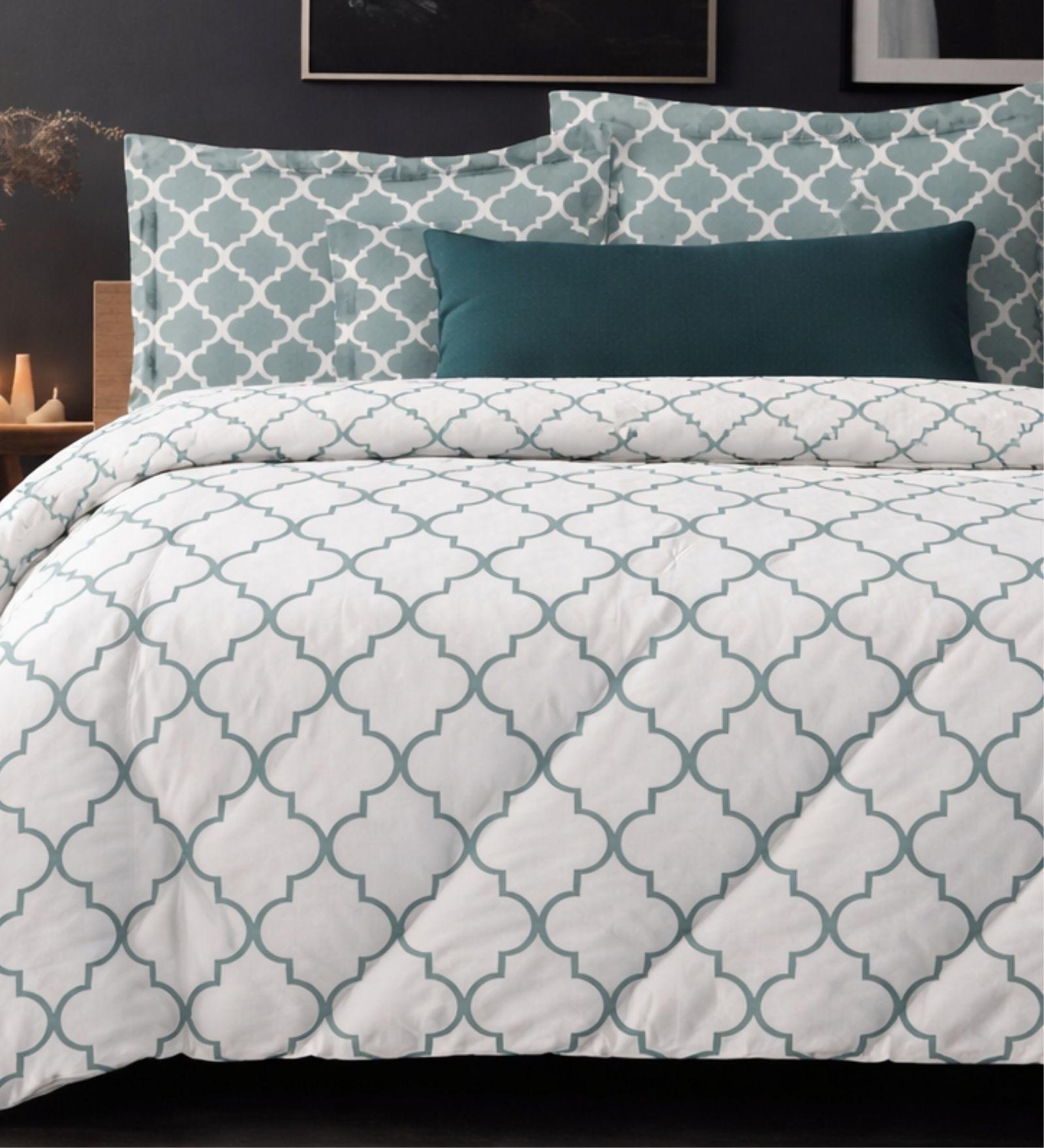 The VBC printed reversible comforter set from Sleeping Owls features modern designer patterns on both sides, allowing two décor styles in one set—perfect for classic and contemporary bedrooms with a rich, premium look.