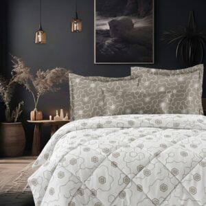 The VBC printed reversible comforter set from Sleeping Owls features modern designer patterns on both sides, allowing two décor styles in one set—perfect for classic and contemporary bedrooms with a rich, premium look.