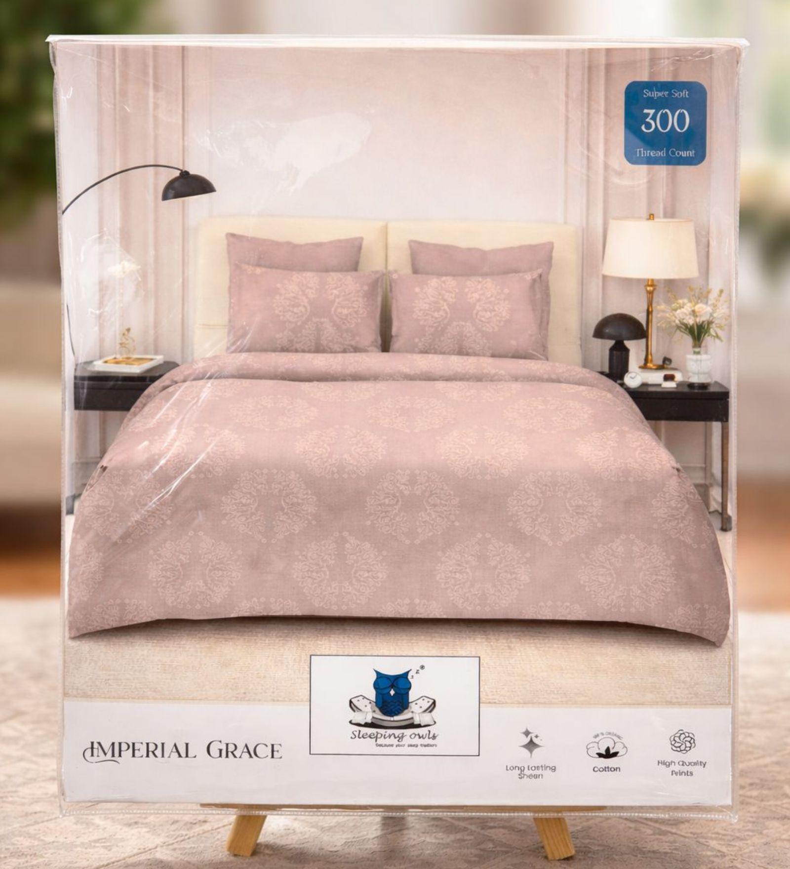 Package Contains: 100% Soft Mercerized Cotton Printed Imperial Grace 300TC Super King Bedsheet With 2 Pillow Covers