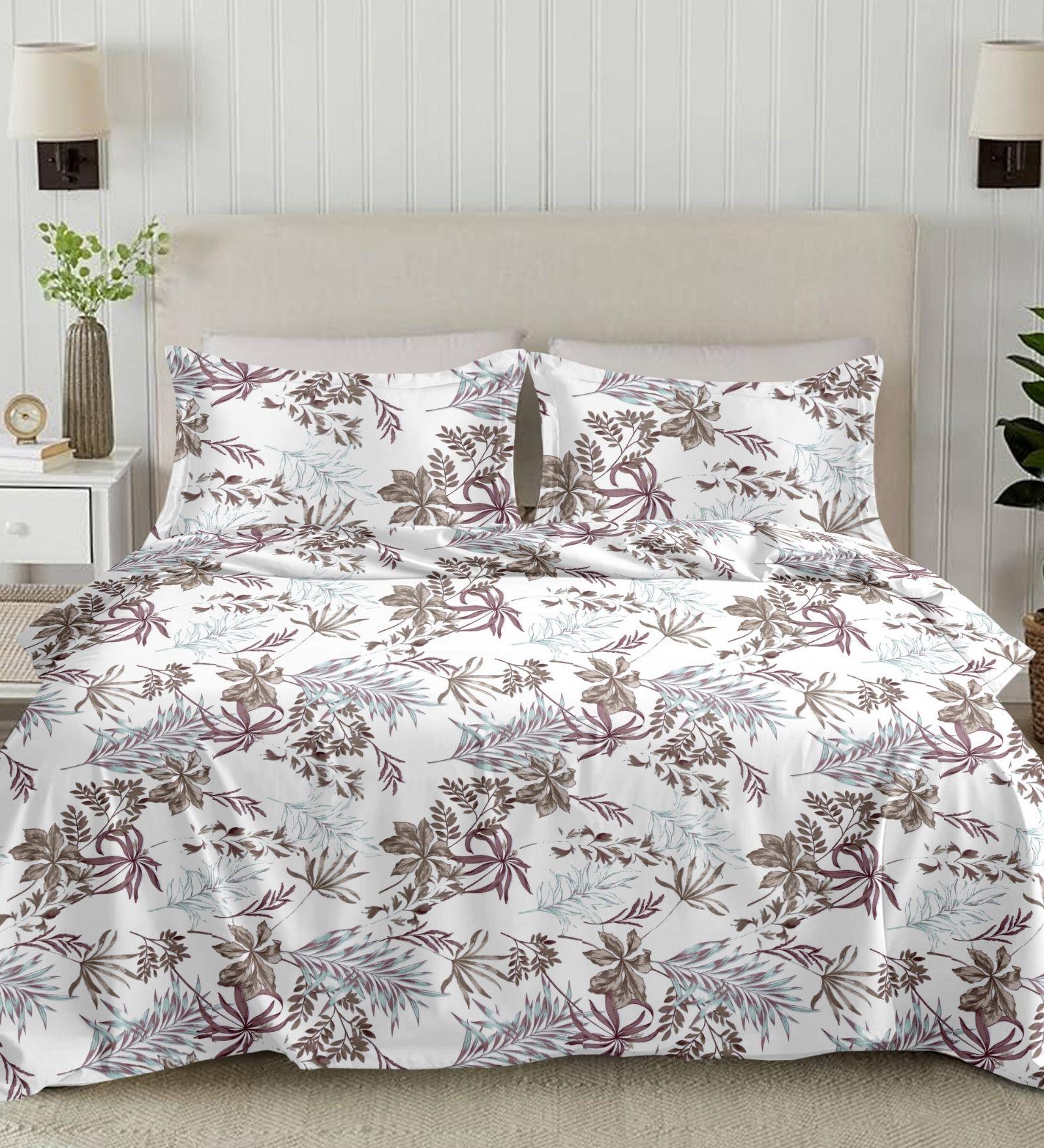 Package Includes: 1 Super King Size Bedsheet with 2 Pillow Covers, crafted in Perkale  210TC 100% Soft Cotton Printed Fabric