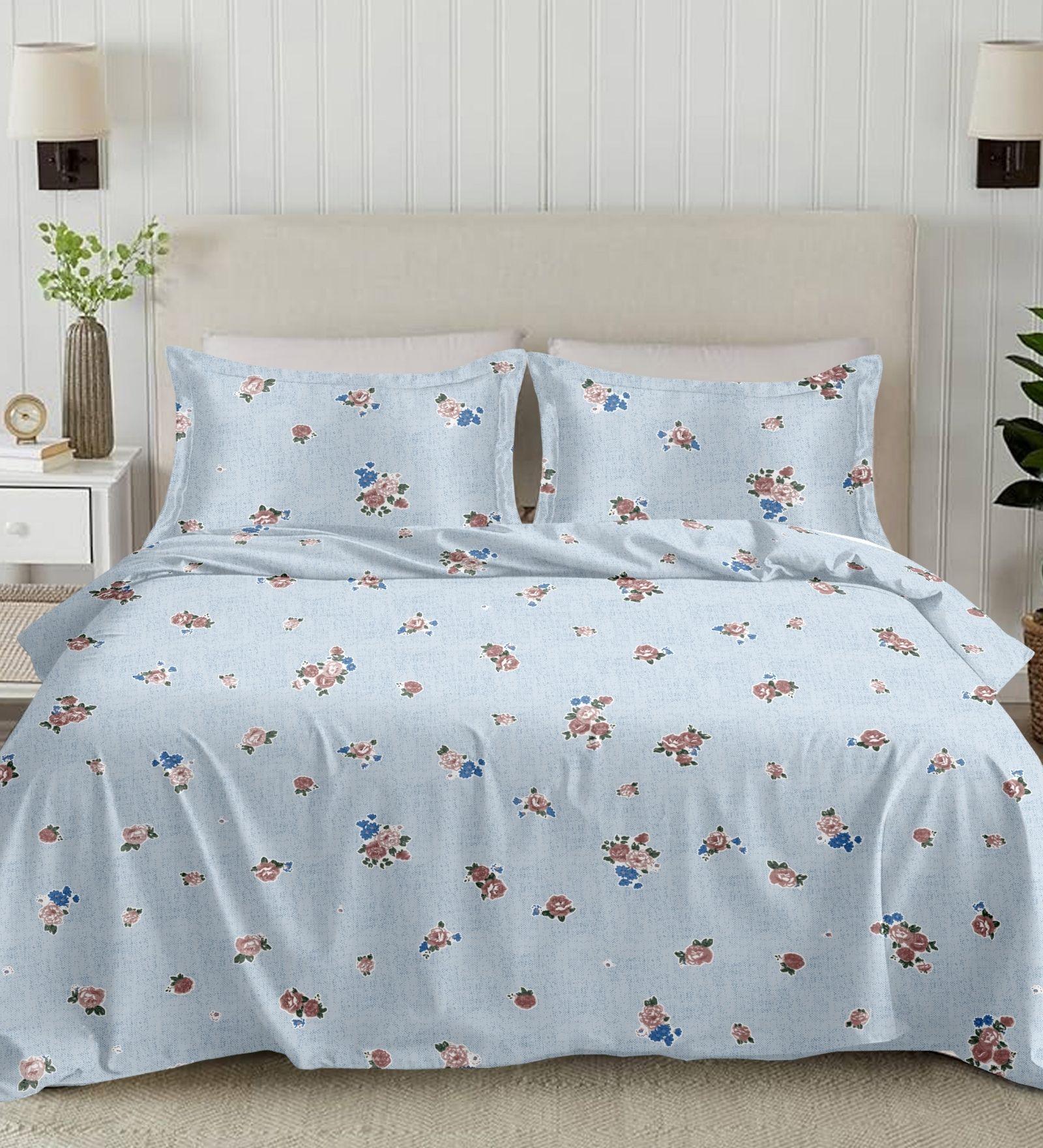 Package Includes: 1 Super King Size Bedsheet with 2 Pillow Covers, crafted in Perkale  210TC 100% Soft Cotton Printed Fabric