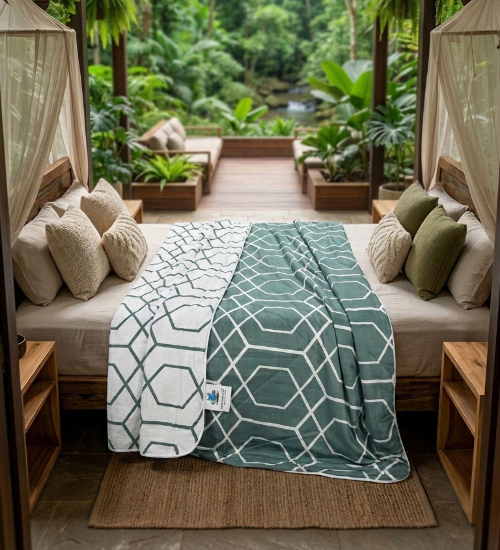 A dohar is a traditional Indian three-layered, lightweight and breathable summer blanket, designed with reversible prints and a soft flannel layer inside, carefully quilted to hold the filling in place—making it comfortable, durable, and easy to wash.