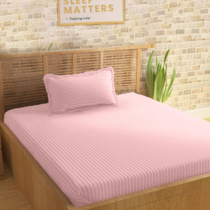 Sleeping Owls Colors210TC Soft 100% Cotton Stripe 1N Super King Bedsheet with 2N Pillow Covers-(PINK)