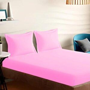 Sleeping Owls 100% Cotton Solids 210TC Plain Soft Super King Bedsheet with 2 pillow Covers-PINK