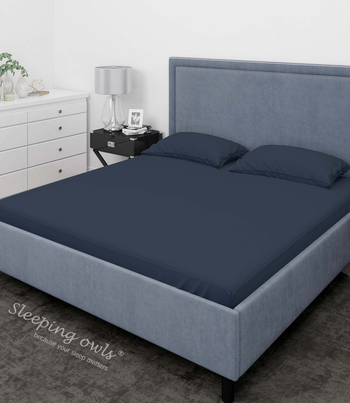 Be the first to review “Sleeping Owls Solids Finest 300TC 100% Cotton Plain Super King Bedsheet with 2 pillow Covers – MEB BLUE” Cancel reply