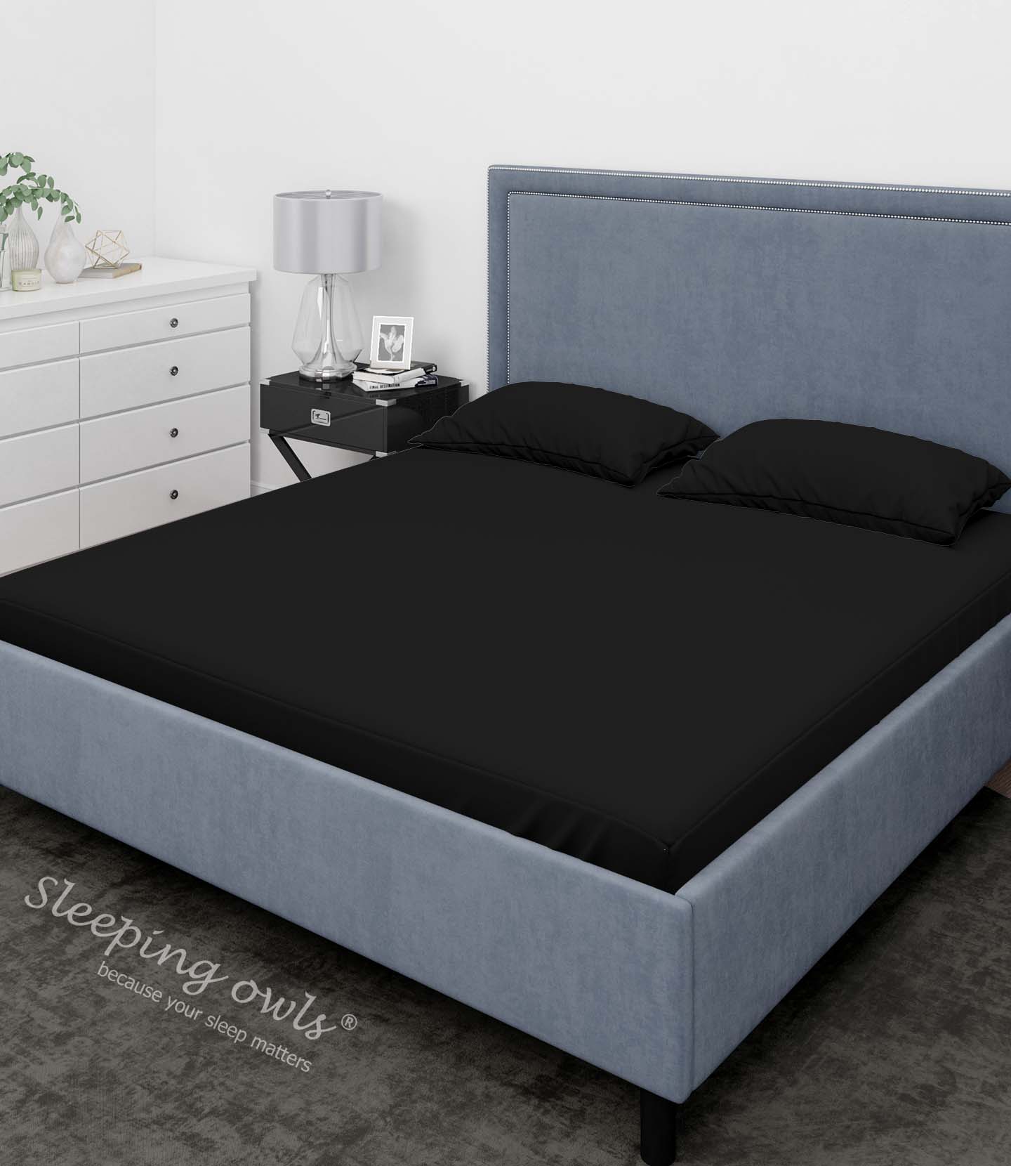 Be the first to review “Sleeping Owls Solids Finest 300TC 100% Cotton Plain Super King Bedsheet with 2 pillow Covers – BLACK” Cancel reply